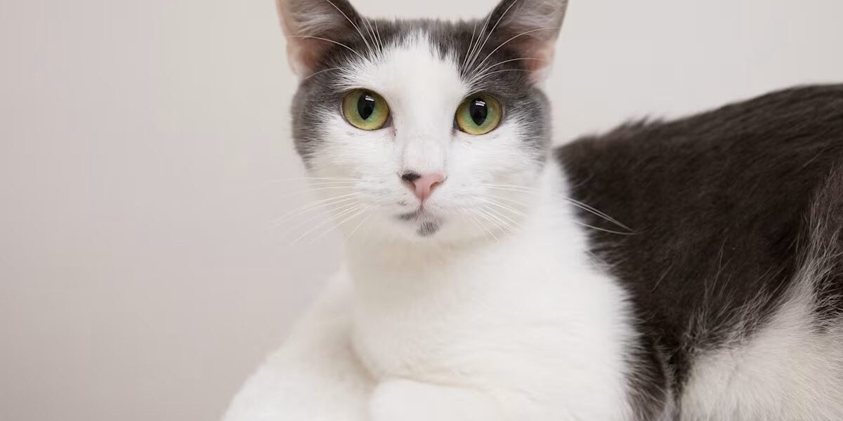 grey and white cat laying on a white blanket